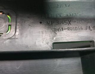 Embellecedor para la guantera de un Renault Megane III. Pieza de plástico en color oscuro. - Diseño curvo y estilizado. - Acabado mate. -Tiene unos roces de desgaste que se nota poco.