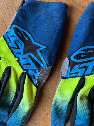 Guantes Alpinestars Dune: ligeros, con buen tacto y agarre. Perfectos para enduro/MX. Detalles clave • Marca/Modelo: Alpinestars DUNE GLOVE (según etiqueta) • Talla: 2XL • Color: azul + verde flúor + negro/gris • Material (etiqueta): 50% poliéster / 32% synthetic suede / 18% poliamida • Detalles: palma tipo gamuza sintética perforada + grip de silicona en dedos, puño slip-on Estado • Muy buen estado, muy poco uso. Ideal para… • Enduro / motocross / off-road • Días suaves o entretiempo (guante fino/ligero)