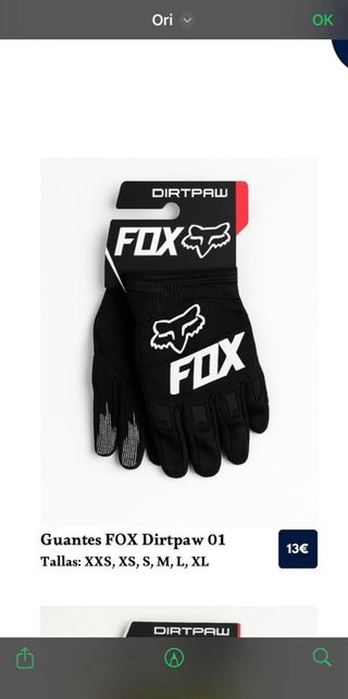 Guantes Fox Dirtpaw para moto, ideales para motocross o enduro. Diseñados para ofrecer comodidad y protección. - Color: Negro y blanco. - Tallas disponibles: S, M, L, XL.
