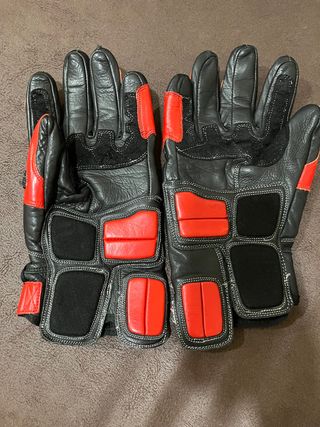 En stock. Nuevos a estrenar. Guantes de piel de vacuno certificada, protecciones de fibra de carbono, costuras con hilo de kevlar resistente a la abrasion, y un diseño espectacular. talla M pero vienen grandes, mas bien una L. Hago envíos por wallapop o externo (6€)
