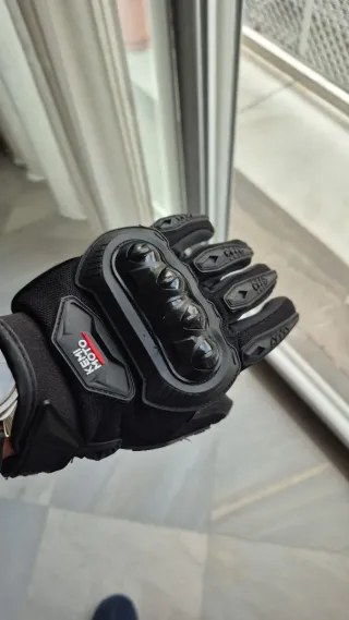 Completamente nuevos, sin estrenar Guantes de moto KEMIMOTO en color negro con protecciones. - Diseño ergonómico. - Protecciones rígidas en nudillos y dedos. - Cierre ajustable en muñeca. - Material transpirable.