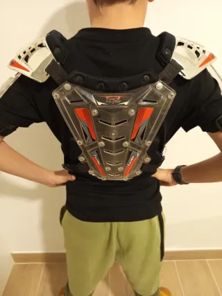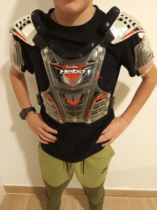 Peto de protección para motocross infantil. Incluye un par de guantes de regalo. - Diseño robusto y protector. - Cierre ajustable para mayor comodidad. - Ideal para la práctica de deportes de motor. - Marca HEBO, modelo Excalibur - Para un nino/niña de hasta 10/11 años aproximadamente. En la foto, el niño tiene 12 años, pero es muy delgado. #tortuga #coraza