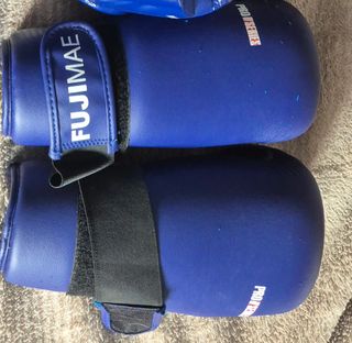 Conjunto de equipamiento FUJIMAE para Taekwondo (TKD). Incluye guantes, protectores de pies y casco. - Color azul. - Modelo Proseries. - Cierre de velcro en guantes. - 15 casco, talla M - 15 flexo-pie, talla M - 30 guantes proseries, talla L
