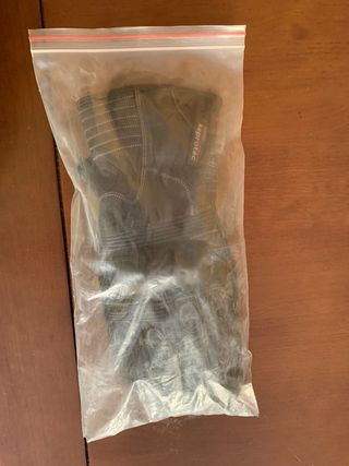 chaqueta de un solo uso , comprada para mi hijo y los guantes igual . ya no se han vuelto a usar chaqueta con forro desmontable, ajustable en la cintura con tiras de velcro , en los brazos se puede ajustar con corchetes . la chaqueta es talla XXS y los guantes es una S.