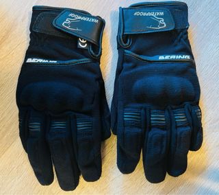 Guantes de moto Bering de color negro. - Material impermeable. - Cierre de velcro en la muñeca. - Protecciones en nudillos y dedos.