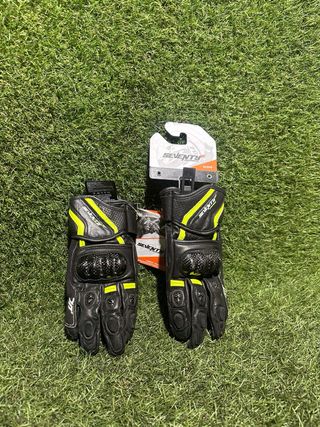 Guantes de moto de la marca Seventy, modelo SD-R2K Racing. - Talla TXS. - Diseño deportivo con protecciones. - Combinación de colores negro y amarillo.