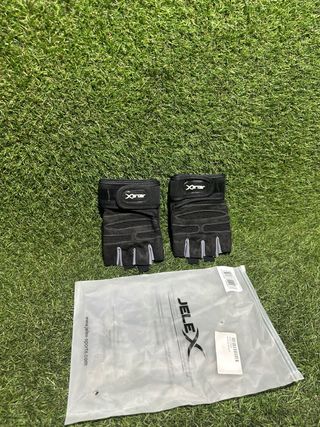 Par de guantes de fitness Jelex con soporte para la muñeca. - Diseño sin dedos. - Cierre de velcro ajustable. - Materiales transpirables. Talla L