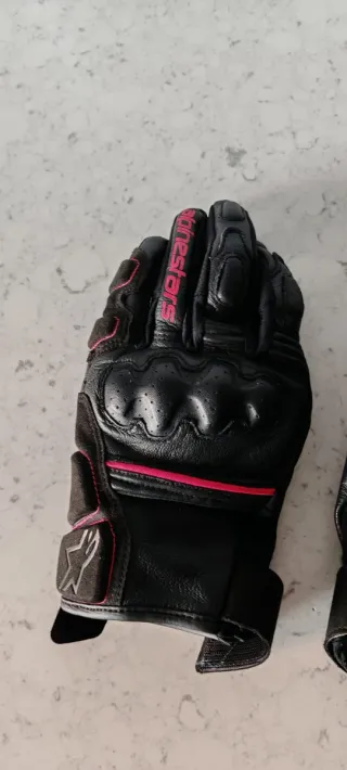 Guantes de moto Alpinestars modelo Stella phenom para mujer en talla S. D - Material de cuero. - Detalles en color fuxia. - Protecciones integradas en los nudillos.