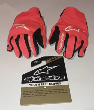 Guantes Alpinestars Youth Reef en color rojo, blanco y negro. Talla YXL. - Construcción textil en la parte superior. - Palma sintética. - Nudillos moldeados. - Muñeca ajustable. - Dedo conductivo para pantallas táctiles. - Ajuste juvenil.