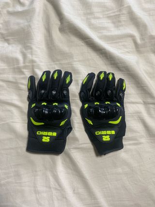 Guantes de moto deportivos, prácticamente nuevos. Ideales para proteger tus manos mientras conduces. - Diseño deportivo. - Color negro con detalles amarillos. - Protección en los nudillos.