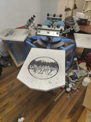 Equipo de serigrafía tipo pulpo con 4 brazos. - Base giratoria. - Ajustes de altura y ángulo. Valorada en 800€ Se regalan pantallas