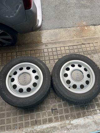 2 Llantas de Audi A3 8L, las ligeras. Impolutas, 1 tiene un poco de pintura saltada en una parte. Recien limpiadas como se puede apreciar. Neumaticos para cambiar ya que son del 2008. Precio negociable, acepto cambios.