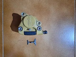 Pinza de freno delantera Grimeca para Aprilia SR50. Pieza de color amarillo, válido también para Yamaha aerox y jog r/rr. - Incluye pasador de pinza.
