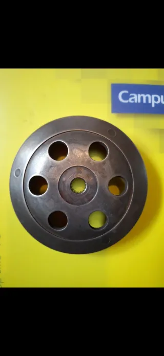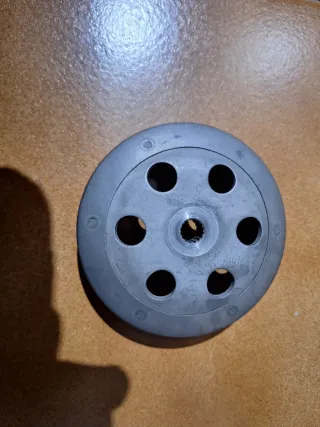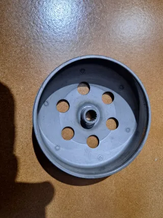 Campana de embrague para moto TNT con motor Minarelli horizontal. - Fabricada en metal. - Diseño circular con orificios.