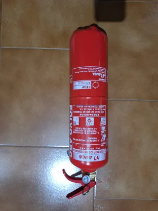 Extintor de incendios de polvo ABC de la marca AUCA. Fecha 2016. Nunca ha sido usado. La presión del manómetro se encuentra en la zona verde. - Capacidad de 3 Kg. - Alta eficacia. - Apto para uso en tensiones de hasta 35 KV a más de 1 m. - Agente extintor no tóxico.
