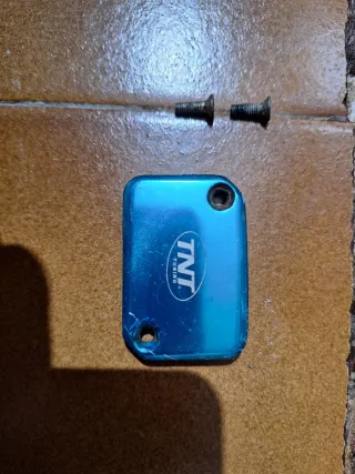 Tapa para bomba de freno de la marca TNT en color azul. - Diseño deportivo. - Acabado metálico brillante.