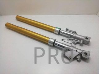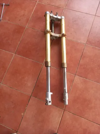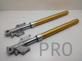 Horquillas delanteras de moto en buen estado. - Tipo: Invertidas. - Color: Dorado y plateado.