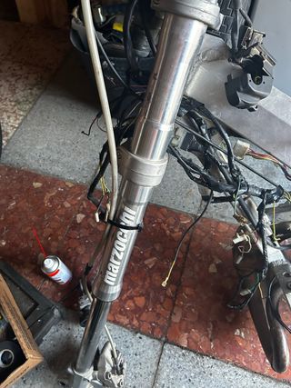 Horquillas invertidas de moto, desconozco el modelo del que vienen, me las dieron al comprar una 49, no están nuevas, las cosas como son, no parece que tengan mal los retenes ya que las comprimo y no tiran aceite, 87cm de altura, no tengo las tijas, únicamente las barras, el precio es negociable Logroño, La Rioja
