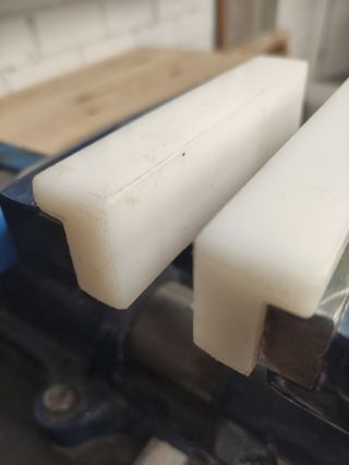 fabricación y mecanizado a medida de mordazas protectoras en nylon macizo con imanes para tornillo de banco trabajo taller. con gran resistencia y densidad, para no marcar piezas delicadas, amortiguadores, horquillas, suspensiones, metales, etc, medida máxima 15cms