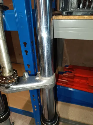 Horquilla delantera para Yamaha Dragstar XVS 1100. Pieza de repuesto para tu moto. - Material: Metal cromado. - Incluye tija y rodamientos. Envío por Wallapop previo pago de una parte del importe por adelantado. Disponibles más piezas de ésta moto, preguntar disponibilidad.
