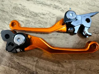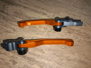 Manetas de freno de color naranja para moto. Fabricadas en aluminio. Tambien cambio por manetas unviersales naranjas - SIN USAR - Diseño deportivo. - Acabado anodizado.