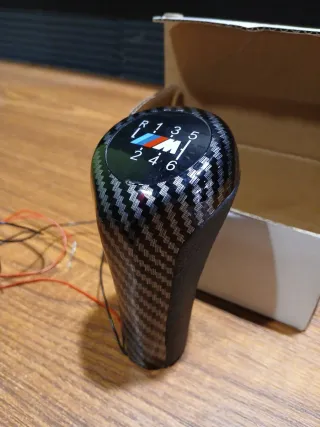 Pomo de palanca de cambios con acabado en fibra de carbono para BMW M. - Diseño deportivo y elegante. - Incluye indicadores de marcha R, 1, 2, 3, 5, 6. - Logo M de BMW integrado.
