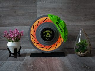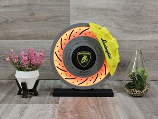 Lámpara decorativa con diseño de disco de freno y pinza de Lamborghini con iluminación LED, interruptor de encendido y apagado. Medidas 25x25