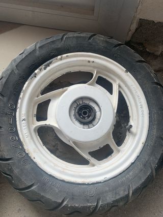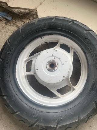 Llantas de repuesto para Yamaha Jog antigua. Medida 90/90-10. DELANTERA Y TRASERA - neumatico original con el dibujo entero,recomendable cambiar por tiempo - Fabricada en Taiwán. - muy bien conservada de pintura pero no esta al 100%
