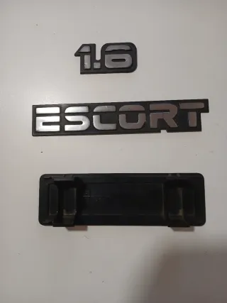 Conjunto de insignias parte trasera para Ford Escort 1.6 Mk4 . También tapa de la radio en plástico negro . Menos el letrero de escort lo demas vale para otros Ford de la epoca de los 90 como Fiesta,Escort, Orion,Sierra,Scorpio etc . Piezas de mi coleccion particular ver fotos del estado de todo muy bueno . Pago contado o bizum . Se envia pero no por wallapop . Ni pujas ni nada.