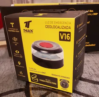 Baliza de emergencia V16 de la marca Thulos, conectada con Telefónica Tech y con conexión IoT. Certificada y autorizada por la DGT. - Luz de emergencia geolocalizada. - Visible a 1 Km de distancia y 360°. - Incluye funda protectora. - Modelo: V16IoT/2. Nueva a estrenar.