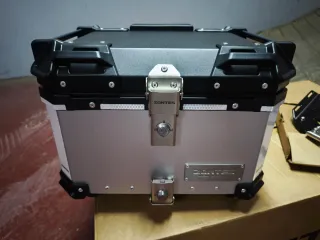 Baúl de 45 litros con soporte específico para Zontes 703f. Ideal para equipar tu moto. - Baúl de aluminio y plástico negro. - Soporte de montaje metálico. - Maleta de viaje.