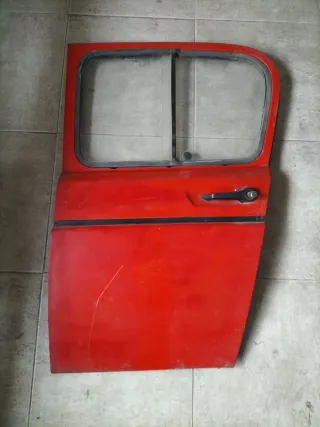 Puerta trasera izquierda de color rojo para Renault 4L. Incluye el marco de la ventana y la manilla. - Color: Rojo. - Material: Metal. - Incluye manilla de puerta. - Marco de ventana.