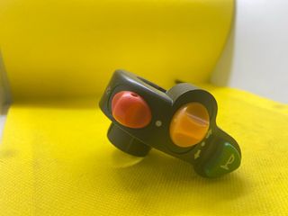 Mando de control para scooter con botones para luces y claxon. - Botón naranja para luces. - Botón naranja para intermitentes. - Botón verde con símbolo de claxon.