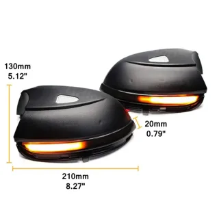 Par de intermitentes dinámicos con tecnología LED para espejo retrovisor. - Diseño moderno y secuencial. - Color de iluminación ámbar. - Compatibles con VW Scirocco.