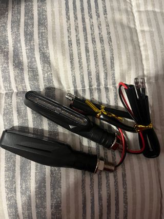 Par de intermitentes LED dinámicos para moto. Diseñados para una señalización clara y moderna. - Diseño alargado y estilizado. - Luces LED de alta visibilidad. - Cableado incluido para instalación.