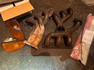 Lote de repuestos para BMW E36. Urge venta. - Pilotos traseros. uno de ellos esta roto. - Intermitentes delanteros naranjas. - Colectores de escape de 4 y 6 cilindros. - Chapas de llantas. - Latiguillo de freno parte delantera piloto. es de un berlina.