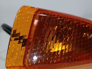 Intermitente delantero izquierdo para Kawasaki ZX-6R, 2007-08. Está un pelín arañado y algo sucio por el uso. - Incluye el intermitente y su conector. - Pieza usada, con marcas de uso.