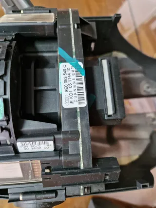 Conjunto de mandos de intermitentes y control de crucero para Audi A4 B7. - Palanca de intermitentes con funciones de luces y limpiaparabrisas. - Palanca de control de crucero (Tempomat) con botones de ajuste de velocidad.