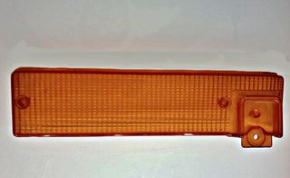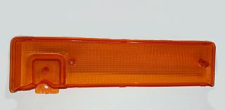 Tulipa de repuesto para el intermitente delantero izquierdo de un Seat 124D. Es de color naranja y tiene un diseño texturizado. - Material: Plástico. - Color: Naranja. - Posición: Intermitente delantero izquierdo.
