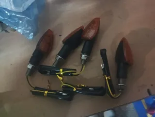 Juego de cuatro intermitentes LED para motocicleta. Diseñados con una carcasa oscura y lente ahumada. - Diseño moderno y deportivo. - Luz LED de alta visibilidad. - Compatibles con la mayoría de motocicletas.