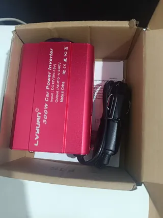 Inversor de corriente Norauto para convertir 12V a 230V. Ideal para usar en vehículos. - Potencia: 300W. - Conexión a 12V. - Salida a 230V. - Incluye pinzas para batería. - Carga hasta 2 portátiles a la vez. - No he llegado a instalarlo siquiera. - Aún con garantía.