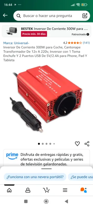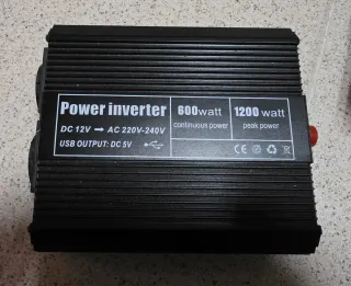 Inversor de corriente de 12V a 220V de 600W. Funciona perfectamente.