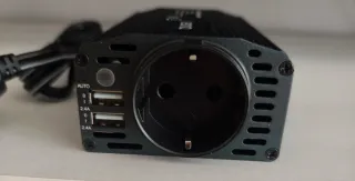 Este inversor de corriente BESTEK te permite convertir la corriente de 12V a 220V. Potencia 200w - Dos enchufes europeos. - Dos puertos USB de carga rápida (2.4A). - Encendedor de coche incluido. - Interruptor de encendido/apagado. - Se ha usado una vez. # Autocaravana, coche, portátil, nevera, TV.