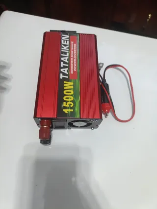 Inversor de corriente Taliken de 1500W. - Color rojo. - Conexión a 12V y salida a 220V. - Incluye ventilador para refrigeración.
