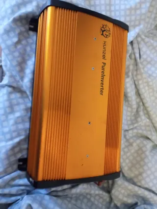 Inversor de corriente 12v a corriente alterna 220v. Potencia de salida 600w. Se conecta a la batería. Tiene soporte vertical para colocar de forma fija en el lateral del maletero o furgoneta. Ideal para caravanas. Protección de seguridad térmica, sobrecarga , polaridad... Cualquier duda preguntar. Se envía o entrega en mano. Si se envía previamente grabo un video personalizado para garantizar su funcionamiento. Soy muy malo haciendo fotos y mi móvil no tiene buena cámara. Esta mejor de lo que se ve en las fotos, se uso muy poco.