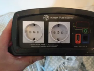 Inversor de corriente DCU Tecnologic 1000W (12V a 220V) Vendo inversor DC/AC de onda modificada con función soft start. Ideal para autocaravanas, furgonetas camper, instalaciones solares, etc. ✅ Potencia: 1000W ✅ Voltaje de entrada: 12V DC ✅ Voltaje de salida: 220V AC ✅ 2 enchufes tipo Schuko ✅ Protección contra sobrecargas y cortocircuitos ✅ Compacto y resistente (aluminio) ✅ En perfecto estado, poco us