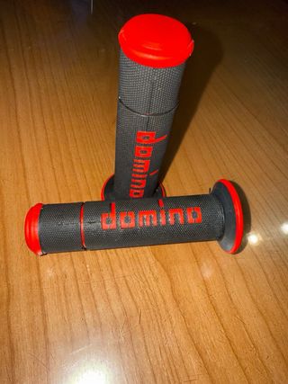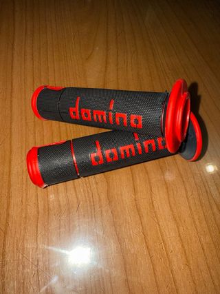 Puños de moto Domino, diseño cómodo y seguro, proporcionan un buen agarre para vehículos off road. color negro y rojo. válidos para motos y quad, también para bicis de descenso mtb etc... Para quads de gatillos son ideales, ya que no es necesario recortar el puño para que no choque con el gatillo! sherco ktm Suzuki honda Yamaha kawasaki Benelli beta Vogue aprilia ltz ltr motocross Mx yz yzf cr crf sx sxf exc excf supermotard dh mtb downhill domino progrip pro taper fox thor anpinestars mtb