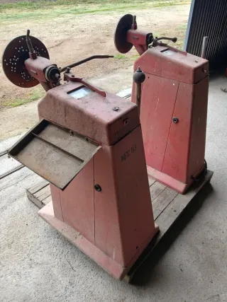 Se venden dos equilibradoras de ruedas en color rojo. Son muy antiguas, bien para coleccionista y gente que le gusta maquinaria de taller, el precio 100 euros cada una, también se puede cambiar por algo que me pueda interesar, información solo por teléfono 646966844