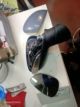Espejo retrovisor exterior derecho en su caja NUEVO , para Ford Fiesta del año 2016. Incluye la carcasa y el cristal. Y un cristal de repuesto original también - Color gris. - Carcasa negra. - Intermitente integrado.