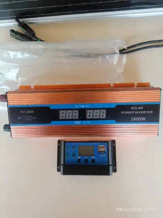 Kit completo para energía solar en tu camper o furgoneta. - Placa solar. - Inversor de corriente. 2600w - Regulador de carga solar Válida para camper ,autocarava, Peugeot boxer,Fiat Ducato,Citroen Jumpy, Renault,Opel, mercedes,opel